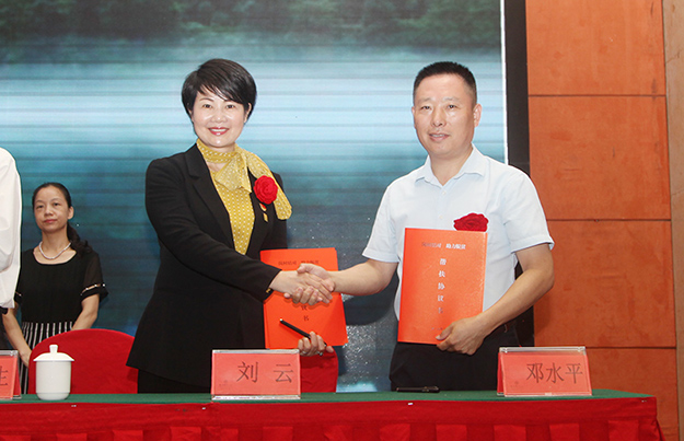 会议期间,大会为湖南省十佳巾帼文明岗、十佳巾帼建功标兵、十佳巾帼建功先进集体等受表彰的集体与个人进行了授牌。安博官网荣获“湖南省十佳巾帼文明岗”称号。在随后举行的“岗村结对 助力脱贫”签约仪式上,安博官网党委书记刘云代表安博官网现场签约,与浏阳市小河乡乌石村结成帮扶对子,并作以“崇德向善——绿之韵关爱女性工作”为主题的经验分享。