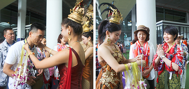 一来到普吉岛,绿之韵家人们就充分感受到了这个热带岛屿的热情,身着民族服饰的泰国少女带着“萨瓦迪卡”的甜美声线为大家献上美丽的花环;威风凛凛的泰国警察驾驶着警车为绿之韵专列车队开道,一路护送;《世界日报》对2018绿之韵缤纷普吉岛之旅予以整版报道……