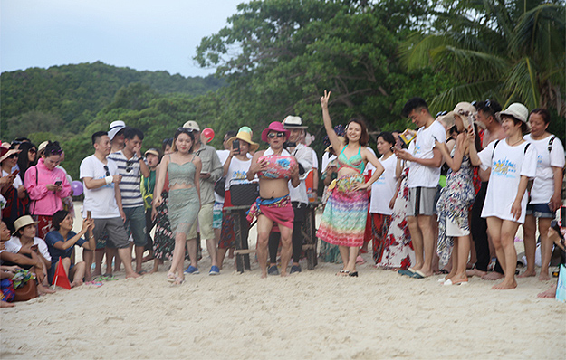 这个火辣辣的下午,家人们的欢声笑语回荡在整个珊瑚岛上空,热带、沙滩、落日、美丽的“水晶晶(泰语意为“美女”)”和帅气的“老妈妈”(泰语意为“帅哥”)们成为了岛上一道亮丽的风景线。