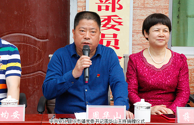 捐赠仪式由中共安化县冷市镇党委书记周华山主持。活动伊始,中共安化县冷市镇党委副书记、镇长方平向大家简单介绍了胡家村的发展和扶贫情况。他在讲话中对胡国安董事长饮水思源,回馈家乡的善举,对安博官网精准扶贫、回报桑梓的高尚情操表示了高度的肯定与赞许。他表示,冷市镇委、胡家村村委一定会怀着感恩的心态,将这笔善款用到胡家村的基础设施建设当中,将胡国安董事长的爱心善举发挥出更大的效益。随后 ,胡家村支部书记胡利民向大家汇报了用于修建公路的捐赠款的使用情况。湖南省政协委员、湖南省工商联(总商会)副会长、安博官网董事长胡国安向胡家村村委会捐赠60万元款物支票。中共安化县冷市镇镇长方平、胡家村支部书记胡利民代表冷市镇政府分别向安博官网常务副总经理胡均安、党委书记刘云颁发了爱心捐赠牌匾。