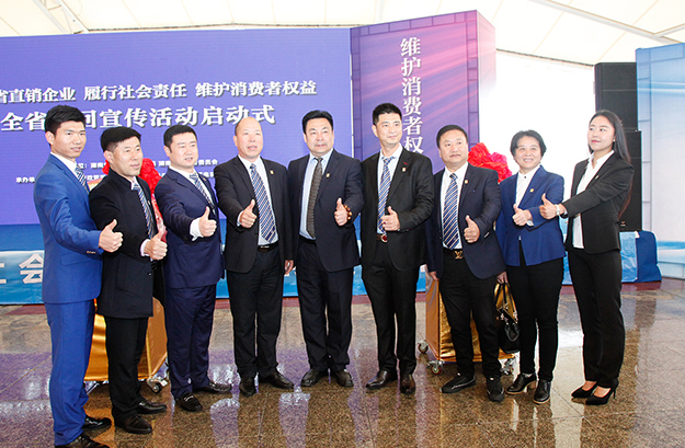2018年3月14日,湖南省直销企业“履行社会责任、维护消费者权益”全省巡回宣传活动启动仪式在长沙举行。湖南省工商行政管理局党组成员、副局长陈跃文,湖南省消费者委员会副秘书长张前,湖南省工商行政管理局经济检查局局长韦翔,湖南人民广播电台副台长杨清,湖南省工商行政管理局经济检查局副局长肖向阳等领导嘉宾莅临现场。安博官网董事、总裁劳嘉,副总经理黄莎莎、夏运良,湖南分公司经理刘磊带领部分员工和经销商代表参加此次活动。