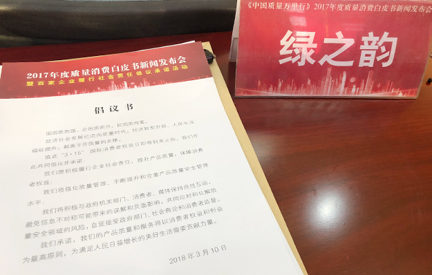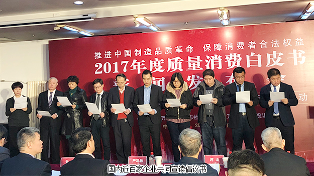 2018年3月10日,由《中国质量万里行》杂志社、中国质量万里行投诉平台主办的“2017年度质量消费白皮书新闻发布会暨百家企业履行社会责任倡议承诺活动”在北京举行。国家质检总局执法督查司司长严冯敏,中国质检报刊社社长谷旭,中国法学会消法研究会会长河山,中消协原副秘书长武高汉,中国质检报刊社副社长兼副总编辑李本军,国家日用电器质量监督检验中心副主任刘国荣,《中国质量万里行》杂志社社长汪鹤林、副社长王黎明等出席发布会。安博官网总裁助理蒋文代表集团公司受邀参会。