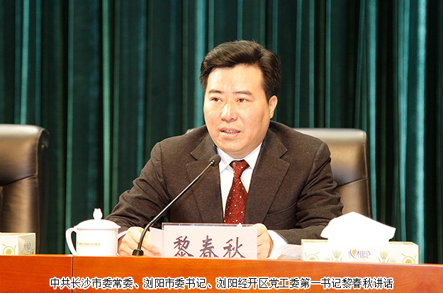 会上,中共长沙市委常委、浏阳市委书记、浏阳经开区党工委第一书记黎春秋发表讲话。他对过去一年来浏阳经开区取得的发展成绩以及对浏阳经济社会发展做出的贡献给予了充分肯定。他表示,2017年,浏阳经开区取得了长足的发展,经济增长实现了历史突破,提升了园区的发展地位,提高了园区未来的核心竞争力。浏阳市委市政府将一如既往地对浏阳经开区的发展给予大力支持。随后,他就园区2018年的工作开展提出四点建议:一要追求发展高质量,提升园区综合竞争力;二要树立园区新形象,打造产学融合示范区;三要深入激活动力源,争当改革的先行者;四要满怀激情干事业,彰显干部队伍精气神。他呼吁,园区各企业和广大职工为促进企业进步和园区又好又快发展做出更大的贡献!