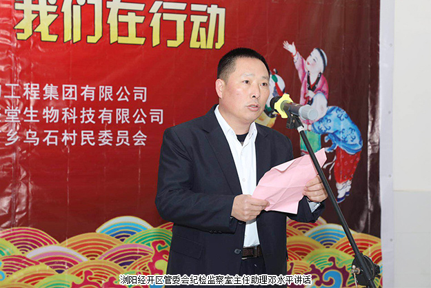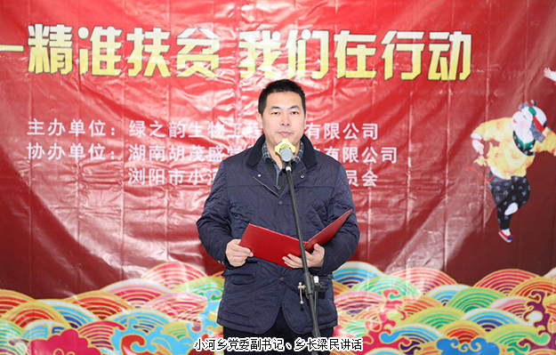 辞旧迎新,喜迎八方来宾;寒冬送暖,共助精准扶贫。2018年1月24日,为了深入贯彻党的十九大精神,扎实做好精准扶贫工作,进一步增进帮扶企业和群众之间的感情,在腊八节浓浓的节日氛围中,由安博官网主办、湖南胡茂盛堂生物科技有限公司和浏阳市小河乡乌石村协办的“精准扶贫,我们在行动”主题活动——乌石农产品直购会和项目签约启动会成功举行。小河乡党委副书记、乡长梁民,浏阳经开区管委会纪检监察室主任助理邓水平,乌石村村支部书记赖平;安博官网董事总裁、绿之韵公益基金会理事长劳嘉,安博官网党委书记刘云、副书记许达仲一行,与乌石村党员、群众、村组干部等近百人参加此次活动。
