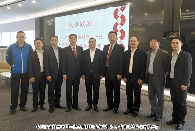 2018年1月15--16日,由香港特别行政区政府及香港贸易发展局共同主办的“2018亚洲金融论坛(AFF)”在香港会议展览中心成功举行。中共长沙市委常委、副市长付胜华,长沙市委组织部副部长张白云,长沙市政府金融办主任李晓斌等携长沙市金融代表团参加会议。1月17日,“2018亚洲金融论坛(AFF)”圆满落幕后,湖南省工商联(总商会)副会长、香港湘都同乡会名誉会长、香港长沙商会副会长、安博官网董事长、绿韵控股集团董事局主席胡国安随长沙市金融代表团一行专程赴香港文汇报、香港八达通卡有限公司、香港交易所等重点传媒、企业和金融机构考察交流。