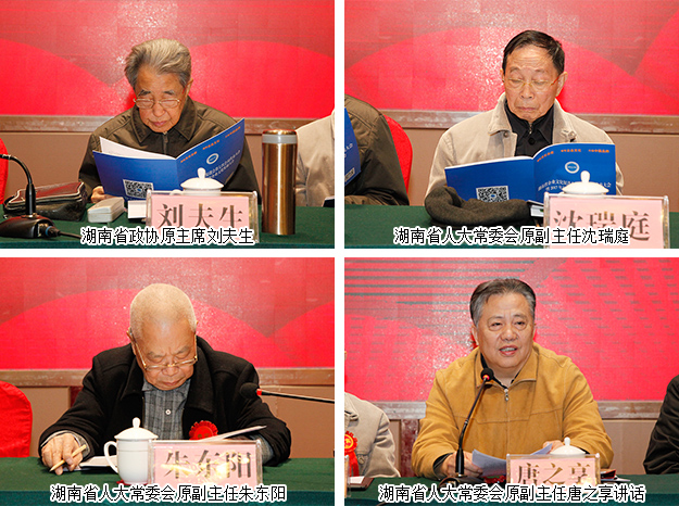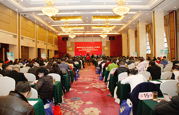 湖南省人大常委会原副主任唐之享讲话。他肯定了过去一年湖南省企业文化促进会在企业文化建设方面的成绩,强调企业的成长史就是一部企业文化建设的发展史,文化创新是企业创新的根本动力。企业必须从实际出发,通过创新企业文化确立企业的核心竞争优势,把加强企业文化建设、创先企业文化发展作为企业发展的立足点,以适应经济发展新常态为重点,牢固树立中国特色社会主义道路自信、理论自信、制度自信和文化自信,促进企业文化软实力稳健增长。湖南省社科联书记宋智富在讲话中说道,希望促进会继续做好企业文化建设典型的培育和推广工作,针对企业需求,帮助企业挖掘、整理、提升具有特色的企业文化,开展企业文化专题研究,争取为我省企业文化创新发展做出更大的贡献。