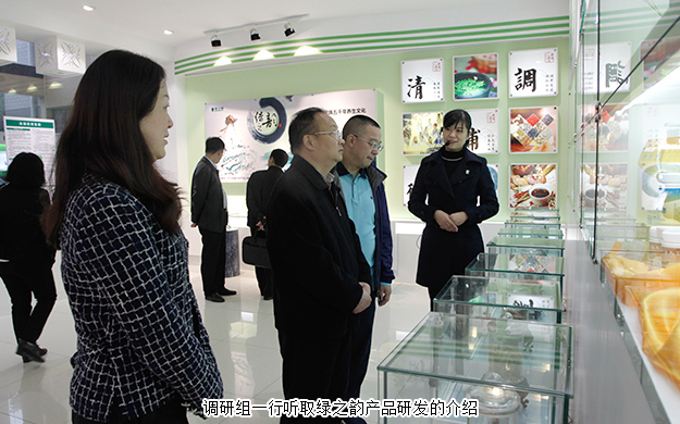 在多功能产品展示厅,调研组一行认真听取了绿之韵“韵宜生”“绿韵兰茜”“享居”等系列产品的情况介绍。绿之韵“坚持以产品为导向”的发展理念、“深化产学研合作、打造具备核心竞争力产品”的发展方向、“立足三农,不断加大种植生产基地建设提升农产品附加值”的发展思路,以及诚实守信、规范运营、产业富民、回馈社会的良好企业形象得到了调研组一行的肯定。