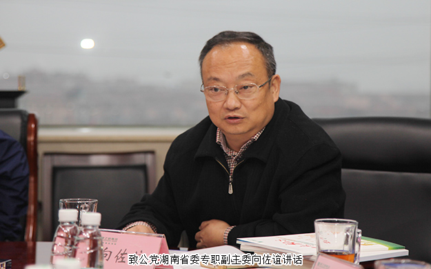 2017年11月14日,致公党湖南省委专职副主委向佐谊、致公党湖南省委办公室主任刘军、致公党湖南省委宣传处处长叶玉泉、致公党湖南省委社会服务处处长彭晖,致公党湖南省委农业农村委员会主任、中南林业科技大学教授罗攀柱一行莅临安博官网调研。致公党湖南省委经济工作委员会副主任、湖南金阳投资集团有限公司副总经理龙科参与调研。致公党湖南省委电子商务委员会主任、安博官网董事长胡国安,安博官网董事、总裁劳嘉,党委书记刘云全程陪同调研。