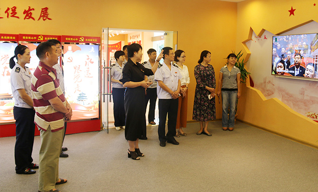 长沙市国税局领导一行主要参观了安博官网党建文化教育基地,并听取了安博官网非公党建工作开展的详细情况。参观期间,安博官网党委书记刘云详细介绍道:自2006年成立党支部,2013年获批成立党总支部,2016年8月获批成立党委(下属10个支部)以来,安博官网始终坚持多措并举,不断加强企业的思想、组织、作风、廉政和精神文明建设,充分发挥党委的政治核心作用和党员的先锋模范作用,推进企业健康、可持续性发展,所取得的成功经验和成果也受到了相关政府部门的高度肯定。2013年,集团团支部荣获“全国五四红旗团委(团支部)”称号;2014年,作为长沙市非公经济企业中党的群众路线实践教育学习典范,集团党委荣获长沙市非公经济“先进基层党组织”称号。目前,集团党委下辖的10个党支部,均建立了工会组织,所有下属企业、全国各分公司均设立团支部,并在全行业内第一家创建了党建文化教育基地。