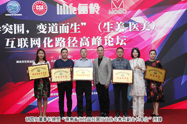 论坛期间,胡国安董事长当选为湖南省化妆品经营行业协会常务副会长,并在活动现场被授予荣誉牌匾。胡国安董事长表示:中国健康产业和美业是完全竞争的成长型产业,是颇具发展空间、产业延伸广阔、内涵丰富、供求弹性度强盛的朝阳产业,具有广阔的产业宏观前景,在创造社会精神文明、解决全国就业、增加新的经济增长点、安定社会秩序、交纳税收等方面发挥了重要作用并作出了突出贡献。此次当选为湖南省化妆品协会常务副会长,他将尽职尽责,带领安博官网与广大会员单位,充分发挥大健康产业、美业对于社会发展的积极作用,着力推进中国美丽健康时尚产业链的有序、持续和稳定发展,为广大消费者带来健康与美丽,为中国美业、健康产业发展作出更大的贡献!