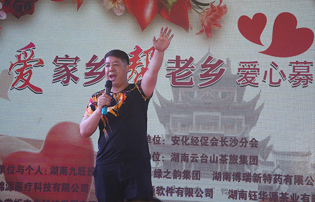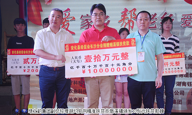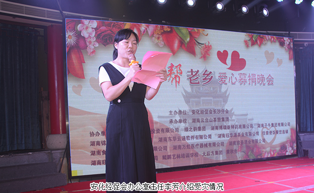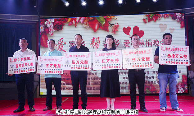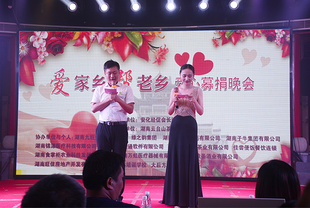 此次募捐晚会,得到中共安化县委、县政府的高度重视,益阳市经济建设促进会长沙分会秘书长、益阳市人民政府驻长沙办事处主任聂超美,安化经促会办公室主任李芳,安化经促会长沙分会会长李蒲初等领导亲临现场。本场募捐晚会汇聚了全国各地匆匆赶来的安化游子,大家纷纷献出绵薄之力,伸出援助之手。安化是集团董事长胡国安先生的家乡,更是绿之韵的精神之源。安博官网副总经理胡均安亲临活动现场,代表集团公司向家乡安化慈善会捐赠12万元,以实际行动助力家乡灾后重建,回报桑梓。