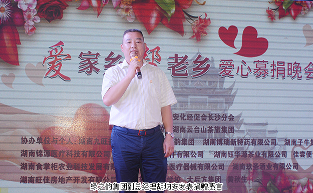 晚会上,安博官网副总经理胡均安在发言中动情地说道:没有安化,就没有绿之韵;灾害无情,游子有爱。作为从安化大山走出来的企业家,集团董事长胡国安先生一直关注家乡,情系家乡,建设家乡,回报家乡,主动承担社会责任,用实际行动回报桑梓。捐款只是回馈家乡的一种形式,未来安博官网、公益基金会在胡国安董事长的引领下,将继续怀着一颗饮水思源的初心,秉承“关爱生命,回馈社会”的发展理念,与其他爱心人士、家乡企业一起捐助更多的家乡公益事业,共同建设好家乡、服务好家乡,传递社会正能量!