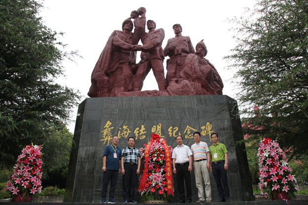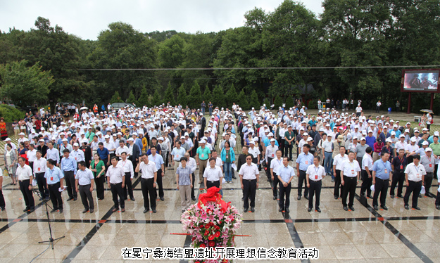 中国光彩事业凉山行活动的第一站便是走进全国民族团结和爱国主义教育基地冕宁彝海结盟遗址及西昌卫星发射中心,进行理想信念教育活动。中共中央统战部副部长、全国工商联党组书记、常务副主席徐乐江带领企业家一行来到彝海结盟遗址,为彝海结盟纪念碑敬献花篮,并参观彝海结盟纪念馆。作为我国四大卫星发射中心,西昌卫星发射中心是我国重要的航空、航天基地,是我国对外开放最早、承担卫星发射最多、自动化程度较高、综合发射能力较强的航天发射场,近80颗国内外卫星从这里送入太空。企业家们对我国拥有世界一流的航天航空技术感慨不已,对中国航天人的奉献与付出表示由衷的敬佩。