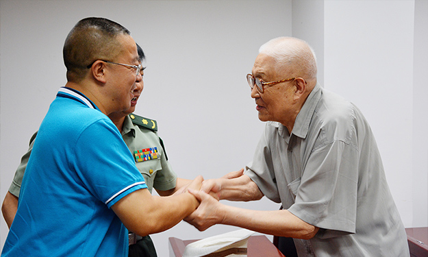 【刘浚简介】:安徽蒙城人,今年87岁。1940年10月参加新四军,1941年8月加入中国共产党。入伍后,先后参加抗日战争、解放战争和抗美援朝战争。抗战期间,曾随新四军4师特务团进入抗日敌占区开辟了豫、皖、苏抗日根据地,并参加了泗北游击战、山子头事件和反“扫荡”等战斗。现为正师职离休干部。