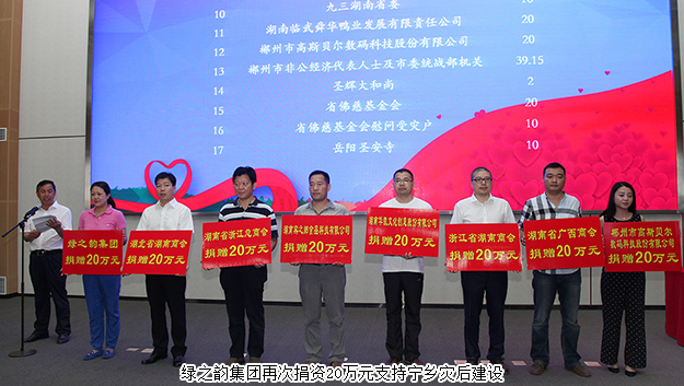 活动现场,湖南省委统战部与宁乡县人民政府签订共建“同心村庄”协议,各民主党派省委、省海联会、非公企业家代表等依次上台进行捐赠。安博官网董事总裁、绿之韵公益基金会理事长劳嘉代表安博官网再次捐资20万元,帮助宁乡灾区人民恢复生产、重建美好家园。