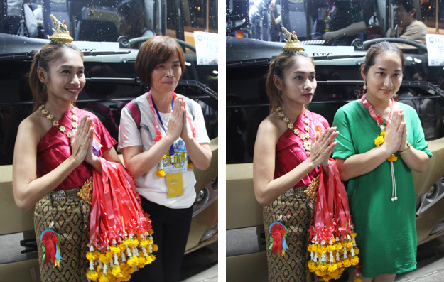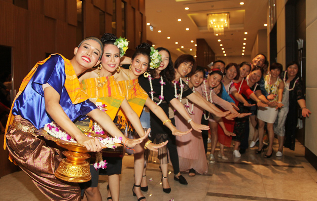 一到泰国,家人们就充分感受到了泰国人民的热情,身着民族服饰的泰国少女带着“萨瓦迪卡”的甜美声线为大家献上美丽的花环;走出机场后,警车开道,威风凛凛,乘坐VIP豪华旅游大巴前往酒店,酒店大堂、餐厅、遍处都是欢迎横幅,礼遇之奢华,简直“泰”尊贵。