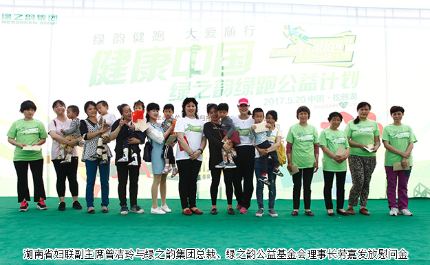 绿韵健跑,大爱随行。活动现场,12位贫困母亲代表在“绿跑”启动仪式上获得爱心捐赠。湖南省妇女联合会副主席曾洁玲与安博官网总裁、绿之韵公益基金会理事长劳嘉上台为贫困母亲发放慰问金。一位贫困母亲代表现场动情分享:“感谢有绿之韵这样的爱心企业和社会各界爱心人士给予我们帮助,给了我们与困苦生活与病痛做斗争的勇气。我是一个拥有13年病龄的‘两癌’患者,感谢有社会大家庭的温暖,有‘绿跑’这样汇聚爱心的活动,帮助我们走出生活的阴霾,拥有美好希望的明天!”