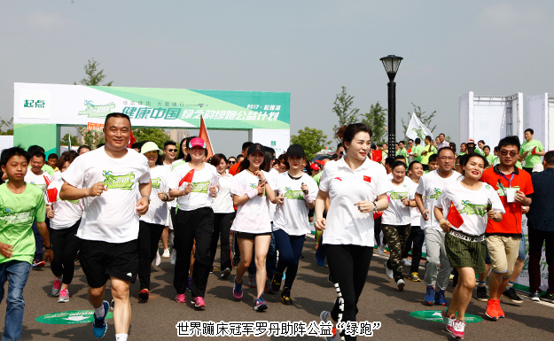 随着一声清脆的发令枪声,18大方阵2000多名绿跑爱好者如离弦之箭冲出起跑线。参与跑步的人群中有星光熠熠的世界冠军、体育健将,也有健康跑爱好者;有年近六旬的老人,也有天真烂漫的孩子;有来自长沙周边热心市民,也有从全国各地远道而来的绿之韵爱心志愿者,身着绿色T恤的他们在阳光的照射下显得格外的青春洋溢。一位热心跑友在镜头前兴奋不已:“为了这次五公里‘绿跑’,我提前准备了很久,真正参加之后觉得跑步还是其次,做公益为爱奔跑才最重要,为‘绿跑’点赞!”世界蹦床冠军罗丹在“绿跑”活动现场表示,绿跑既起到了倡导全民健身的作用,还号召大家用实际行动支持公益,值得参与!