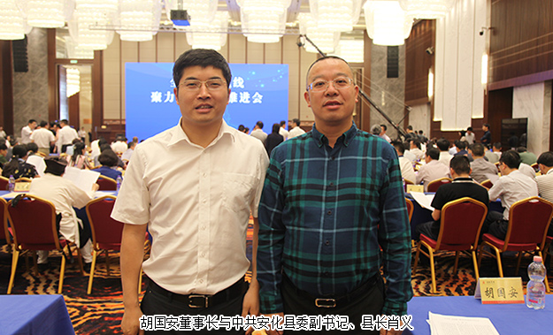 2017年5月17日,湖南省统一战线聚力脱贫攻坚推进会在湖南宾馆成功召开。中共湖南省委常委、省委统战部部长黄兰香,湖南省政协副主席、民盟省委主委杨维刚,湖南省政协副主席、九三学社中央常委、湖南省委主委张大方,湖南省政协副主席、致公党湖南省委主委胡旭晟,中共湖南省委统战部常务副部长谭平等领导出席会议。湖南省政协委员、省工商联(总商会)副会长、省慈善总会副会长、安博官网董事长胡国安作为非公有制企业家代表受邀出席会议。