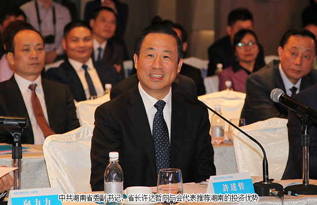 中共湖南省委副书记、省人民政府省长许达哲向香港工商界长期以来给予湖南发展的关心和支持表示感谢。他指出,港湘合作在过去已取得丰硕成果,香港不仅是湖南的第一大外资来源地,也是湖南对外出口的第一大市场,还是湘企对外投资聚集度最高的地区之一。多年来,湘港两地优势互补、互利共赢,以亲密合作造福了两地人民、促进了两地发展。当前,湖南正瞄准富饶美丽幸福新坐标,立足“一带一部”区位优势,积极融入“一带一路”建设,大力实施创新引领开放崛起战略,坚决打好脱贫攻坚、转型升级和环境治理三大战役,构建“四大体系”、打造“五大基地”,加快建设经济强省、科教强省、文化强省、生态强省、开放强省。这些目标的实现,需要更好地学习借鉴香港的发展经验,需要同香港开展更高层次、更宽领域的务实合作。