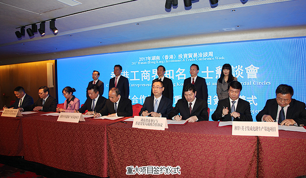 会议还举行了战略协议和重大项目签约仪式,现场签署1个战略合作协议和21个项目,合同引资1235亿元。21个项目中,制造业项目12个,合同引资638亿元;总投资50亿元以上的项目11个,合同引资1052亿元。此外,为进一步增强实效,扩大影响,会上还专门播放了以“开放崛起新湖南”为主题的招商宣传片,并向参会客商发放《2017湖南重点招商引资项目册》《投资湖南(2017)》《湖南省开放型经济政策汇编》等宣传资料,强有力地宣传、推介了湖南。