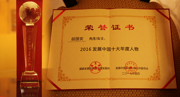 为深入贯彻今年全国两会精神,培育新常态下发展新动能,展现中国企业家精神风貌,着力振兴实体经济贡献更多智慧和力量,迎接党的十九大胜利召开,2017年4月8日,由国家发展改革委员会、中国发展网主办的第二届中国新常态经济发展高层论坛暨2016“发展中国年度人物”盛典在北京隆重举行。国家发展改革委副主任、国家统计局局长宁吉喆,第十届全国人大法律委员会副主任、原湖南省委书记王茂林,国家发展改革委原副主任、中国国际经济交流中心常务副理事长张晓强,十八届中央候补委员、中国老区建设促进会会长王健,全国工商联副主席、中国民营经济研究会会长庄聪生,全国政协常委、全国总工会原副主席段敦厚,国务院国资委监事会主席刘顺达,中共中央政府研究室原副主任、中国国际经济交流中心副理事长沙祖康,十一届全国人大财经委副主任委员贺铿,全国人大常委、全国人大内务司法委员会委员张涛,中国国际文化传播中心执行主席、党组书记龙宇翔,国务院参事、全国政协第八届委员、第九届第十届常委任玉岭,新疆自治区原副主席、中华全国供销合作总社原副主任戴公兴,国家网络安全工程研究中心副主任张彧,国家工商总局反垄断与不正当竞争执法局原局长宁望鲁,中国企业联合会副理事长、中国企业家协会副理事长于武等领导出席本次论坛。政协湖南省第十、十一届委员、中国青年企业家协会常务理事、湖南省工商联(总商会)副会长、安博官网董事长胡国安受邀出席,同与会领导、专家学者、企业家围绕“供给侧结构性改革助力实体经济发展”话题思维碰撞、圆桌论道,并被授予“2016发展中国十大年度人物”荣誉称号。