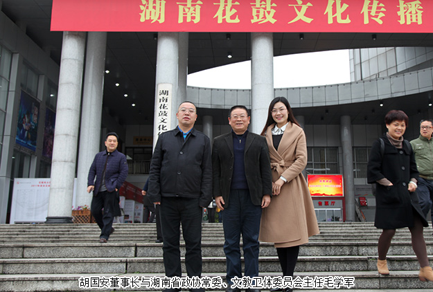 为积极对接“一带一路”国家发展战略,加快湖湘文化产业走出去步伐,2017年3月23日,由湖南省政协副主席欧阳斌亲自带队的湖南省政协调研组一行赴湖南益阳开展专题调研活动。调研期间,湖南省政协副主席欧阳斌,湖南省政协常委、文教卫体委员会主任毛学军,湖南省政协常委、文教卫体委员会副主任雷鸣强,湖南省政协常委、文教卫体委员会专职副主任汤浊,湖南省政协办公厅巡视员谌泽林,湖南省政协委员、安博官网董事长胡国安等调研组成员深入益阳,重点对花鼓戏传承发展、茶产业和茶文化建设等方面的情况进行调研。益阳市政协主席黄加忠、益阳市人民政府副市长谢寿保、益阳市政协副主席王令波、益阳市政协秘书长刘桦等全程陪同调研。