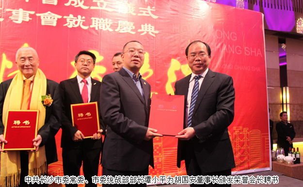 湖南香港湘都同乡会的成立得到了中央政府驻港联络办、湖南省委省政府、长沙市委市政府的关心和大力支持。中央政府驻港联络办副主任杨建平先生,中共湖南省委常委、省委统战部部长黄兰香女士,省政协港澳台侨和外事委员会主任陈益枝,省委统战部副部长陈潇,省政府驻深圳办事处主任廖克勤,中共长沙市委常委、市委统战部部长谭小平等到会祝贺。安博官网胡国安董事长任名誉会长,华谊兄弟(长沙)电影文化城有限公司董事长刘启东任首届会长。