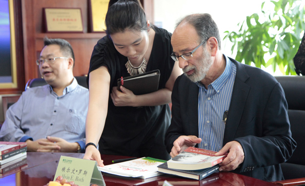 2016年9月20日上午,诺贝尔经济学奖获得者埃尔文·罗斯(Alvin E. Roth)教授一行亲临安博官网参观考察。浏阳经开区党工委副书记、管委会主任郭力夫,安博官网战略发展顾问、中国直销市场研究学会秘书长胡远江,安博官网董事长胡国安、董事执行总裁劳嘉以及公司高层等全程陪同考察。