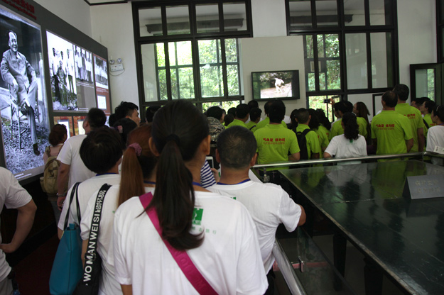 第三站,我们到达的是中国风水宝地毛泽东故居,这是一栋普普通通的江南农舍,为“一担柴”式的房子。它座南朝北,背山面水。这是我们新中国伟大领袖毛泽东主席诞生的地方,它被誉为“红太阳升起的地方”、中国革命的“圣地”,这里留下了毛泽东主席青少年时期求学、生活、劳动及从事革命活动的痕迹,见证了他点燃革命的圣火。