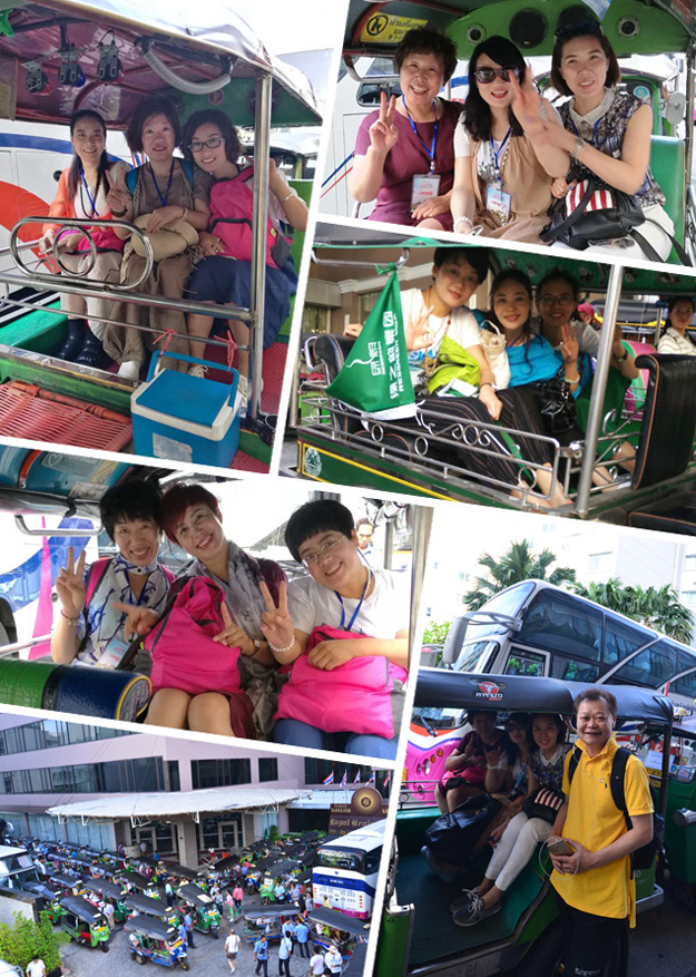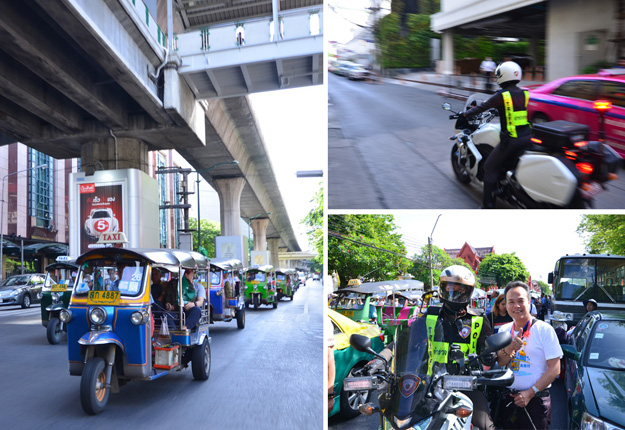 警车开道,威风凛凛,趣味盎然的嘟嘟车绿之韵专列车队载着绿之韵营销精英出发了!泰国,我们来了!