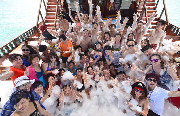 被誉为“东方夏威夷”的芭堤雅,以阳光、沙滩、海鲜名扬天下,这些都被绿之韵人承包啦!乘着海盗船出海,玩起泡泡浴激情四射,火火火!