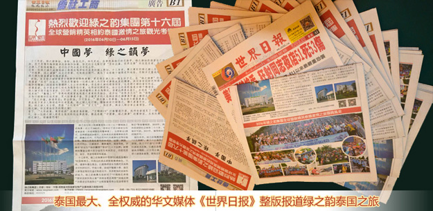 《世界日报》整版绿之韵泰国艳彩之旅的报道充分鼓舞了家人们的心,中泰交流绿之韵欢迎晚宴上,香槟、美食,绿之韵人一展才艺,欢声笑语飘荡在这个神奇的国度上,久久不能散去……