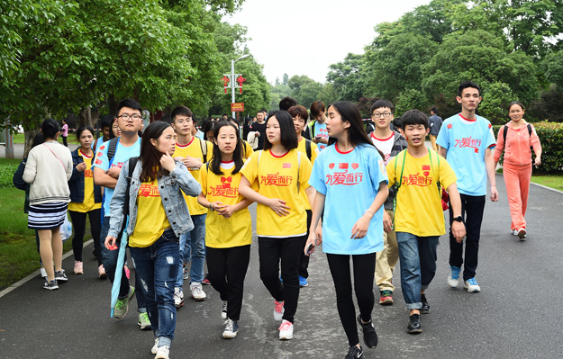 从橘子洲头毛泽东青年艺术雕像处出发,大家三五成群,沿着既定的线路徒步前行,相识的、不相识的,大家挥舞双手,以眼神鼓劲,用微笑问候,朝着一个共同的梦想、共同的爱心、共同的追求迈进。行走队伍吸引了许多民众的广泛关注,民众们自发自觉融入到爱心队伍当中。此次行走活动途径揽月亭、橘洲客栈、诗词碑、桃园等景点,湘江两岸风光尽收眼底,沿途的欢声笑语和美丽风景让大家忘记了行走的疲劳。