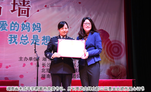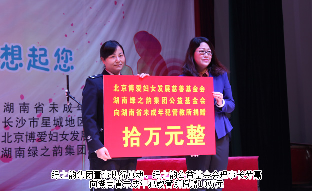 2016年5月8日,情暖高墙——安博官网关爱未成年服刑人员及特困母亲慰问爱心活动联合北京博爱妇女发展慈善基金会走进湖南省未成年犯教管所。湖南省司法厅党组成员、副厅长、省监狱管理局党委书记、局长方华堂,中纪委办公厅原巡视员、慈善基金会顾问毛祚策,北京博爱妇女发展慈善基金会会长陈富刚以及湖南省未成年犯教管所领导等出席活动。安博官网董事执行总裁、绿之韵公益基金会理事长劳嘉,安博官网党总支书记刘云、绿之韵公益基金会秘书长蒋文、湖南分公司副经理刘磊等共同参与活动。