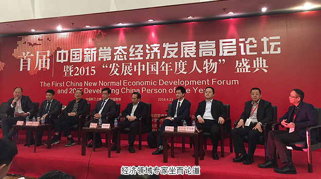 4月22 -24日由国家发展改革委中国发展网举办的“首届中国新常态经济发展高层论坛暨2015‘发展中国年度人物’盛典”活动在北京钓鱼台国宾馆举行。全国政协第十一届副主席阿不来提•阿不都热西提发来贺信,国家发展改革委原副主任、中国国际经济交流中心常务副理事长张晓强,中央政策研究室原副主任、中国国际经济交流中心副理事长郑新立,中国人民银行研究局首席研究员邹平座,国家发展改革委宏观经济研究院副院长马晓河作论坛主旨演讲,来自产学研等各领域的数百位嘉宾出席了本届论坛。