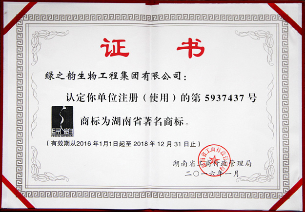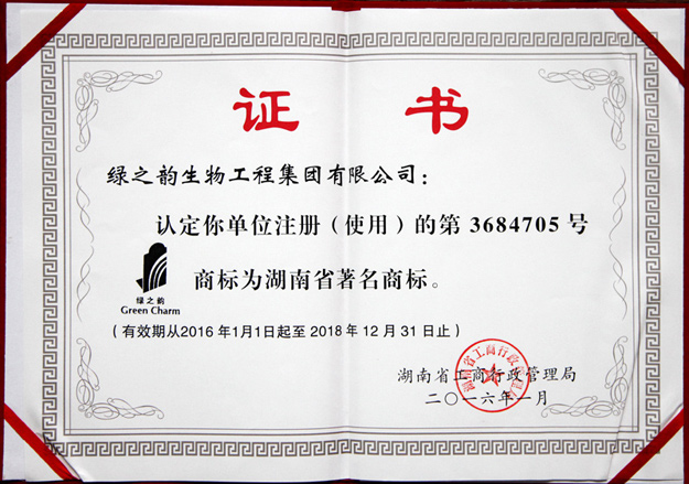 近日,经过湖南省工商行政管理局等单位长达近一年的层层严格考察、评审、公示及后期考察,“绿之韵”商标再次成功获得“湖南省著名商标”称号。这不仅标志着“绿之韵”的商标专用权将得到更有效和更广范围的保护,还将提升企业的品牌发展战略,不断推动企业品牌影响力的辐射广度与深度。