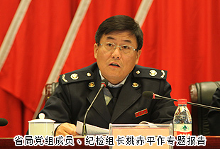 省局党组成员、纪检组长姚赤平作了专题报告,他指出,2015年,在省委省政府、总局和省纪委的坚强领导下,全省的地税系统党风廉政建设工作取得了长足进步。2016年工作的总体要求是:认真落实习近平总书记系列讲话精神,坚决按照全面从严治党要求,深化“一调两转”,推进“一改两创”,着力加强基层正风肃纪工作,把全系统党风廉政建设不断引向深入。