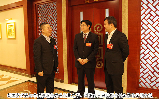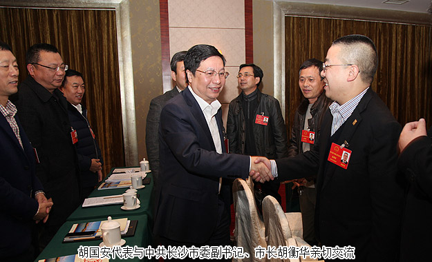 大会开幕式后,中共湖南省委常委、长沙市委书记易炼红,长沙市委副书记、市长胡衡华,长沙市人大常委会主任袁观清等来到代表驻地,看望参加长沙市十四届人大四次会议的全体代表,鼓励大家畅所欲言、献计献策。胡国安代表与各位领导、代表座谈时发言,“在今年的政府工作报告中,市委市政府始终围绕“创新、协调、绿色、开放、共享”八个字做文章,尤其是关于民生、精准扶贫的篇幅很大,让人倍感务实和与时俱进,给人很强的信心。市委市政府着力推进浏阳河生态经济带建设的整体思路与安博官网的绿色、生态经济发展思路,以及在浏阳河与捞刀河畔建立生态休闲园、建立五星级生态酒店等未来发展规划不谋而合,这充分体现了市委市政府决策的前瞻性和绿之韵规划的正确性。同时,这次会议在承前启后的特殊时期召开,可谓意义特别重大。如何谋划好‘十三五’发展,实现好‘十三五’的精彩开局和开门红,是我们所有人大代表十分关切、十分关心的问题。安博官网将紧紧团结在市委、市政府周围,抢抓机遇,加快发展,为努力建设能量更大、实力更强、城乡更美、民生更爽的长沙,贡献自己应有的力量!”
