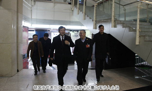 胡国安代表在与中共浏阳市委书记曹立军亲切交流时,进一步表示:“2016年,我将牢牢把握‘创新、求进’两大主题,紧紧围绕市委市政府的决策部署,切实履行职能,多思发展之计、多献惠民之策、多促利民之事,充分发挥协调关系、汇聚力量、建言献策、服务大局的人大代表作用,为尽快实现‘建设省会副中心和湘赣边区域性中心城市’,率先全面建成小康社会目标作出新的贡献!”