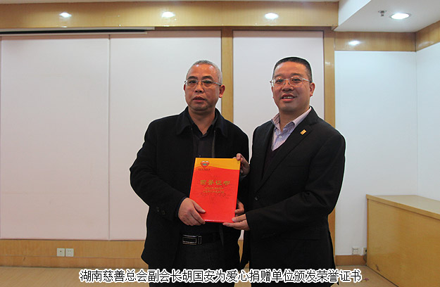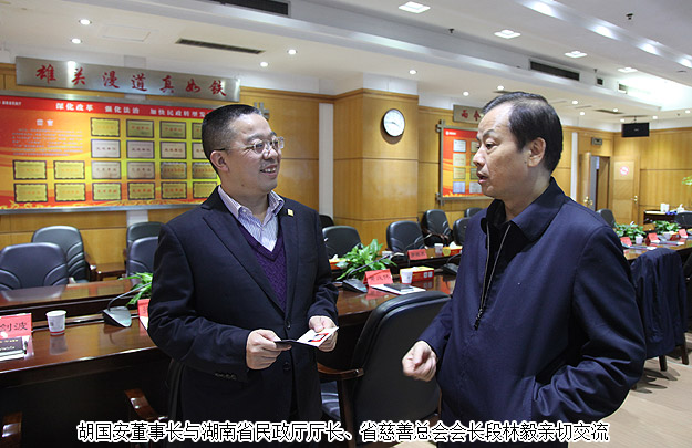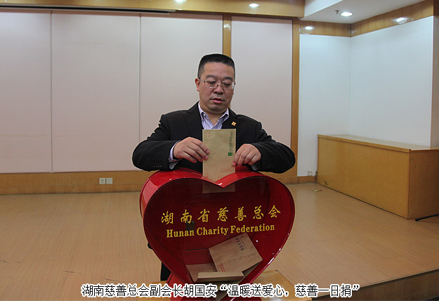 2016年1月6日,“2016年慈善一日捐”在省民政厅机关举行捐赠仪式活动,这标志着湖南省慈善总会倡导的“2016年送温暖献爱心·慈善一日捐”活动正式启动,现场注入第一笔爱心款84900元。湖南省民政厅厅长、省慈善总会会长段林毅作了动员讲话;湖南省政协原主席、省慈善总会会长王克英同志,湖南省委原副书记谢康生、原湖南省人大常委会副主任罗桂求等省老领导出席了活动,并带头进行捐赠。湖南慈善总会副会长、安博官网董事长胡国安先生参与捐赠,同时为爱心捐赠单位颁发荣誉证书。