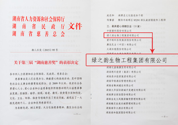 “凝聚小家、发展大家、报效国家”是绿之韵的经营哲学。十二年来,安博官网在胡国安董事长带领下,踊跃参与和倾情捐助了教育、关爱老人、赈灾、扶贫、帮困等100多项社会慈善事业,累计捐赠款物达6000多万元,用实际行动履行着企业应尽的责任和义务,如:在全国各地先后援建了11所希望小学、陆续投入1000万元开展“树人行动”、投入300万元在全国各地开展“绿韵圆梦•书香助学”活动、向湖南省光彩事业基金捐赠3000万元促进“老、少、边、穷”地区的经济发展和社会进步、捐资300万专项扶贫基金开展“关爱贫困母亲”行动。产业富民、服务“三农”,绿之韵湖南安化万亩中药材种植基地是省委、省政府“万企联村•共同发展”30个省级重点示范项目之一,带动了10万农民脱贫致富,40万受益农民不需外出务工,实现就地转化就业,促进了当地经济发展和社会和谐,赢得了各级政府、社会各界人士的广泛好评。2015年,绿之韵慈善基金经过湖南省民政厅批准正式升级为绿之韵公益基金会,为多方筹募慈善款物,有效实施慈善救助,为推进湖南省公益慈善事业快速发展做出了积极贡献。
