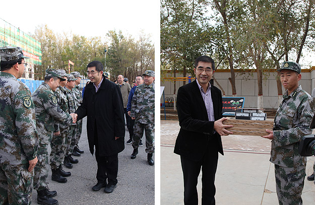千年胡杨,不朽精神脊梁;大漠戈壁,尽显英雄本色。在充满光荣与梦想的甘肃酒泉卫星发射基地,2015年10月24—27日,中共十八届三中全会即将召开之际,“湘水情长”——湖南省政协委员文化拥军活动在这里举行。活动由总装备部政治部、湖南省政协办公厅主办。活动向总装备部政治部指定的50个基层连队捐赠价值过百万的杂志书籍、计算机设备等。活动由湖南省政协副主席张大方带队前往,省政协副秘书长、办公厅主任、研究室主任吴志宪、省政协研究室副主任江涌等领导也随队前往,湖南卫视、基地东风电视台全程报道。安博官网作为活动支持单位,获颁“湘水情长,文化拥军”拥军公益先进单位,胡国安委员参与活动。
