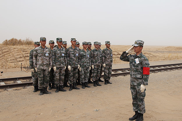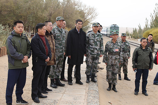 “狂风可卷千堆雪,壮士能抵万顷沙”。25日,湖南省政协委员文化拥军活动一行搭乘军用专列,近4小时车程后来到基地铁路管理处的“铁四连”进行捐赠慰问活动。驻地在巴丹吉林沙漠边缘的“铁四连”是基地最偏远、最艰苦的连队,为了防止风沙埋道,保证线路安全畅通,风沙越大越要在线路上坚守。