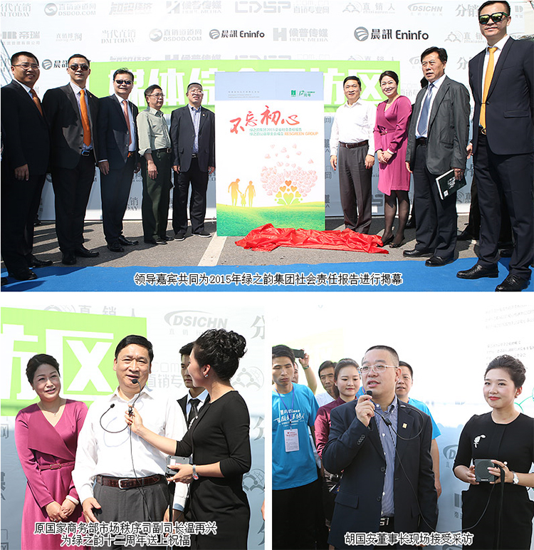 风雨漫漫成长路,岁月悠悠荣耀情。历经十二载,安博官网在发展实业的同时,积极承担社会责任,产业富民,回馈社会。活动现场,原国家商务部市场秩序司副司长温再兴、原吉林省长春市工商行政管理局副局长许长军、中国市场学会直销专家委员会专家欧阳文章与安博官网董事长胡国安、董事常务副总裁劳嘉携集团高管、安博官网全球战略委易园翔、李继前,安博官网全球策略为委员会副理事长彭名共同为2015年安博官网社会责任报告进行揭幕仪式。万涓成水、汇爱成海,领导、嘉宾、胡国安董事长、劳嘉副总裁、集团高管们带领所有在场的绿之韵家人巡展至公益慈善展区,投身大爱,扫码关注绿之韵公益基金会,参与“码上做公益”活动,赢得了现场阵阵掌声。