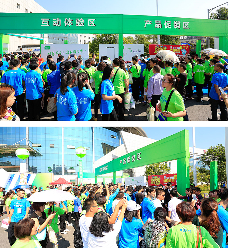 三大产品展区,首先印入眼帘的气势恢宏的企业文化立体展板,该展示区域从绿之韵产品、生产理念、研发团队、产品荣誉等多个方面直观、形象和生动地细数了绿之韵十二年产品文化传承、辉煌发展之路。以白色为底蕴,以绿色孕育生机,绿之韵旗下韵宜生、绿韵兰茜、享居三大系列产品展区柔美简洁,充分体现出自然、健康、优质的产品文化。嘉年华现场有专业的工作人员在展台前进行产品演示与互动,引得现场家人们竞相观看和体验。