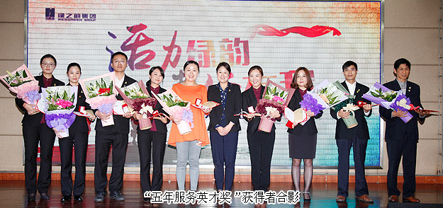 神圣的颁奖环节聚焦了全场的目光,掌声雷动,欢呼与尖叫响彻全场!丰收离不开绿之韵全体的辛勤耕耘,辉煌离不开绿之韵人的奋力拼搏。大会集中颁发了“三季度优秀服务集体”、“三季度服务明星”、“五年服务英才奖”和“十年服务忠诚奖”等奖项。获奖部门代表、个人依次踏上领奖台,享受大家的声声祝福和热烈掌声,共同分享此时此刻的快乐。本次表彰会上,业务服务部、企划部、山西分公司、保安组喜获“三季度优秀服务集体奖”,王壮、姚雅、张海丽、张智皓、程瑶、喻鸣鸾、李翼、夏丹、高芳、张晓芳、杨芳、肖波、杨丹、王小波、汤霞琳、胡树峰、齐峰雪荣获“三季度服务明星”殊荣;张晓芳、周金霖、盛夏、高素丹、彭姣、李倩婷、唐鸣、王小波、邹建华荣膺“五年服务英才奖”,董事常务副总裁劳嘉上台颁发了香港周大福珠宝公司特约设计师量身定做的、镌刻获奖者名字的足金荣誉徽章和奖金;肖巧林、蒋文、周瑛、李娟、湛甜、王薇、章建军、胡益军荣膺“十年服务忠诚奖”,不仅收获了全体绿之韵人的祝福,还按级别荣获了60万元购房补贴金、10万元企业年金奖励金、1万元的家庭带薪旅游基金和由香港周大福独家设计的金银币纪念奖章,董事常务副总裁劳嘉上台颁发了由香港周大福独家设计的金银币纪念奖章及奖金。