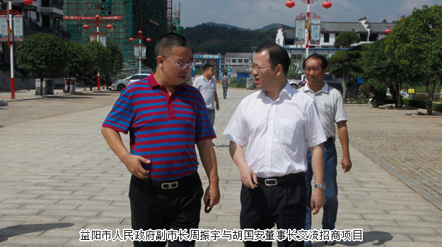 2015年8月20-21日,中共长沙市委常委、统战部长文树勋,长沙市政协副主席、市工商联主席彭继球带领市委统战部、市工商联以及30余名企业家赴益阳开展湖南省会企业家“同心促发展•光彩益阳行”活动。活动考察了益阳龙岭工业园区、高新区东部产业园,并开展了益阳市、安化县招商引资项目推介会及光彩事业捐赠活动。中共益阳市委书记胡忠雄,中共益阳市委副书记、市人民政府市长许显辉,中共益阳市委常委、组织部部长、统战部部长何俊峰,益阳市人民政府副市长周振宇,益阳市人大常委会副主任、市工商联主席刘时贵等陪同。长沙市工商联(总商会)副主席、长沙市光彩基金会理事长、安博官网胡国安董事长出席活动,并为统战部同心工程安化扶贫项目捐赠30万元。