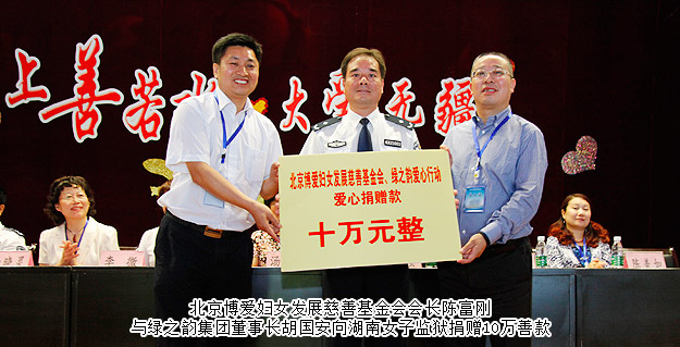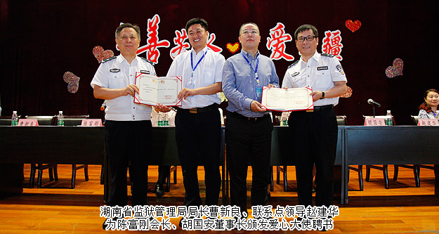 绿之韵关爱监狱贫困母亲,不仅在经济上给予支持,还随同湖南省女子监狱共同走访湖南各地市服刑人员家庭,行程1700多公里,给这些贫困家庭里的老人、孩子送去爱的温暖以及精神鼓励。活动中,湖南省监狱管理局副局长曹新良、联系点领导赵建华为陈富刚会长、胡国安董事长颁发爱心大使聘书。2013年,当绿之韵关爱贫困母亲行动第一次走进湖南省女子监狱时,胡国安董事长就为100名特困服刑母亲发放爱心救助金20万元。今天,他又再次走进女子监狱为特困服刑母亲进行爱心捐助。