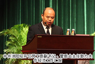 本次会议由中共开发区党工委书记周岳云主持,党工委副书记、管委会主任郭力夫作了“把握新常态,实现新跨越,奋力跃上‘千亿园区’新台阶”的讲话。他首先回顾2014年经济工作,浏阳经开区克服宏观经济形势下行的影响,迎难而上,真抓实干、开拓创新,各项工作呈现出又好又快的发展局面,先后荣获湖南省加速推进新型工业化一等奖、长沙市2014年度国家级园区绩效考核第一名,综合实力在全省109个园区排名中挺进3个位次跃入前六强。他指出,浏阳经开区2015年经济总的指导思想是:以“四个前面”的治国方略为方针,深入贯彻落实中共长沙市委、浏阳市委经济工作会议精神,把握新常态,力求新作为,突出项目拉动、驱动创新、改革推动、管理带动,加快实现长沙、浏阳的双向融城,以项目建设推动产业结构调整、以产业结构调整推动园区快速发展,努力成为长沙高科技产业的重要增长极、浏阳经济发展的主阵地,奋力迈上“千亿园区”新台阶。
